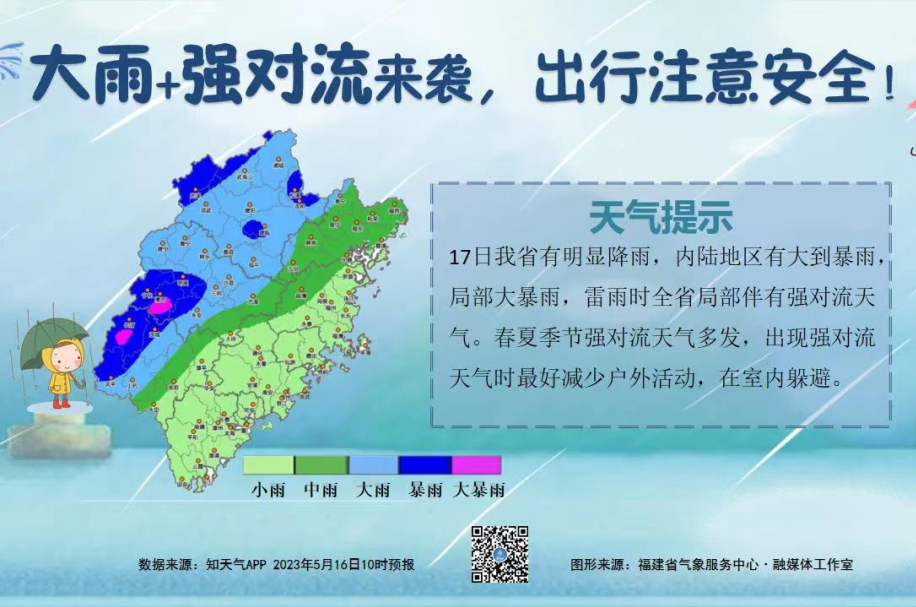 16日,全省多云有阵雨或雷阵雨, 宁德的局部和三明的部分和南平的大部有中雨,三明的局部和南平的部分大雨,南平的局部暴雨。雷雨时局地伴有强对流天气。