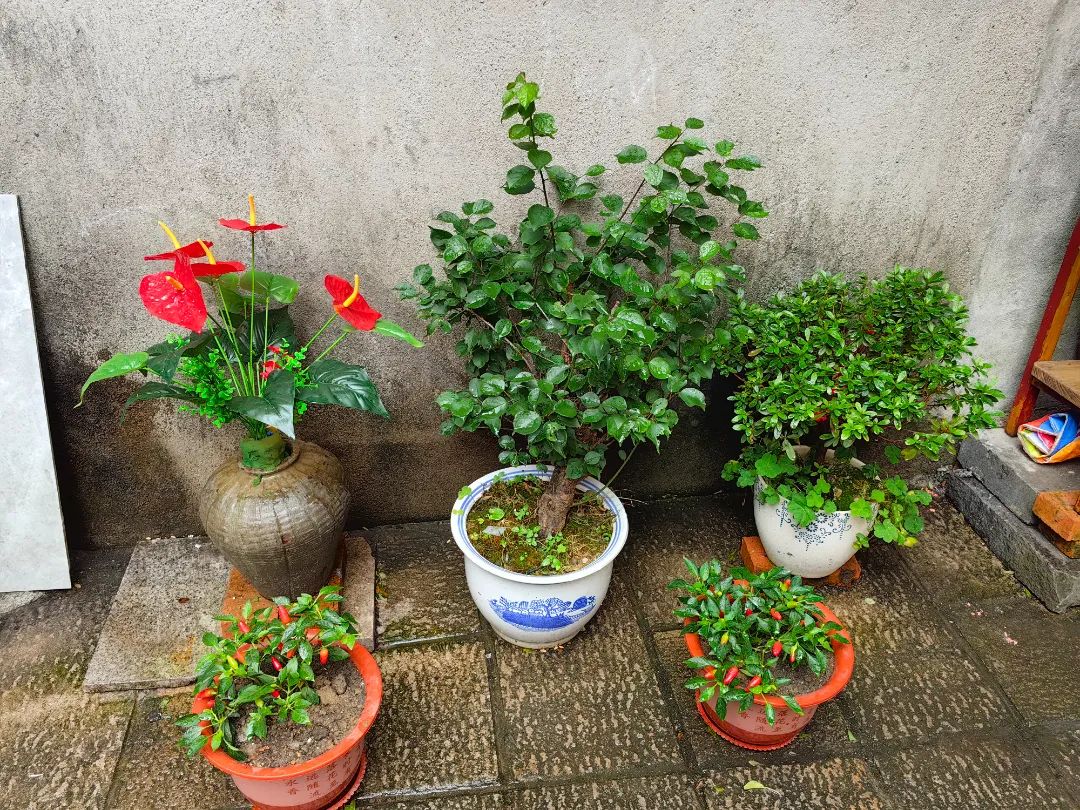 把家里的花花草草搬到巷子里