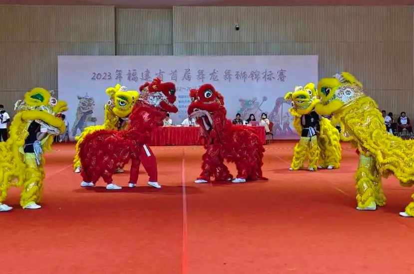 5月28日,2023年福建省首届舞龙舞狮锦标赛在福州旅游职业中专学校开擂,福建省39支队伍同台“争霸”,超500名舞龙舞狮运动爱好者对舞龙、南狮和北狮项目展开角逐。