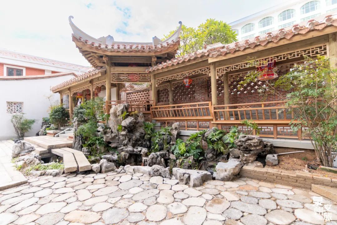 在新路埕,有一处新的小型园林,最近成了热门地。传统的闽南建筑风格搭配上各式花木、叠石、理水、亭榭等元素,古朴雅致,颇有一种大隐于市的意味。