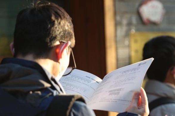 资料图:一名考生拿着资料在复习。中新社记者 刘力鑫 摄