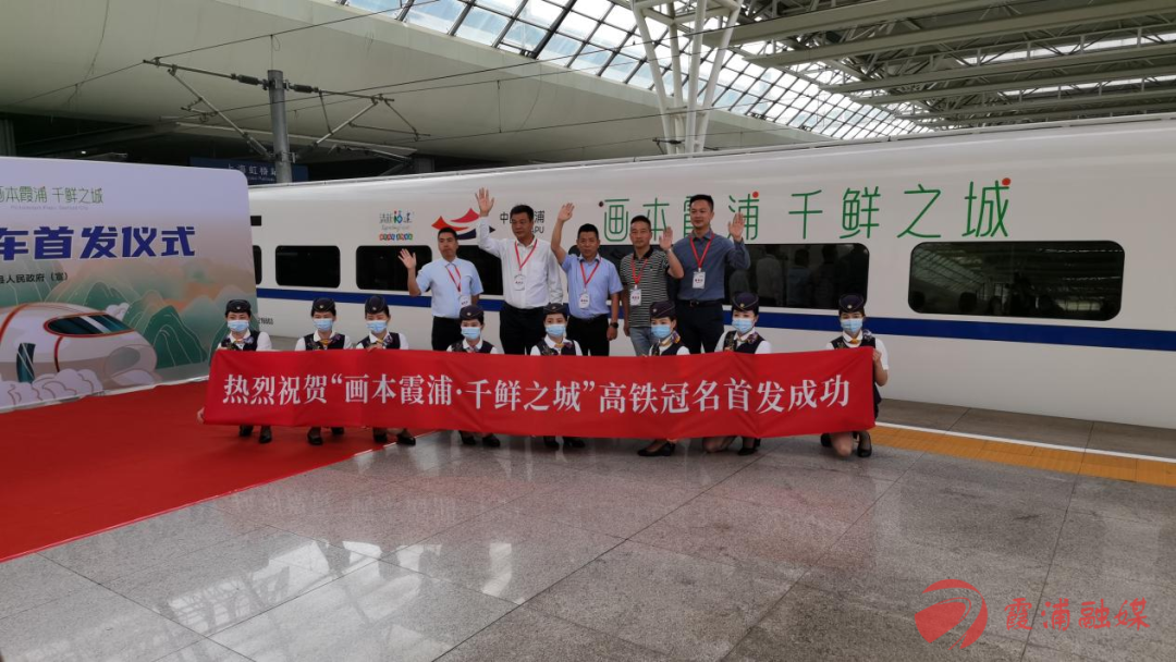 仪式上,参会嘉宾们一起为列车上的车身贴进行揭幕,“画本霞浦 千鲜之城”的宣传语赫然印在了列车每个车厢的顶部位置,车厢内的每个座位上也都有“画本霞浦 千鲜之城”相关的广告标语等,这些宣传语将随着这列高铁在祖国的大江南北进行展示,并借助日益增长的高铁客流量持续提升霞浦旅游知名度,扎实推动霞浦旅游高质量发展。
