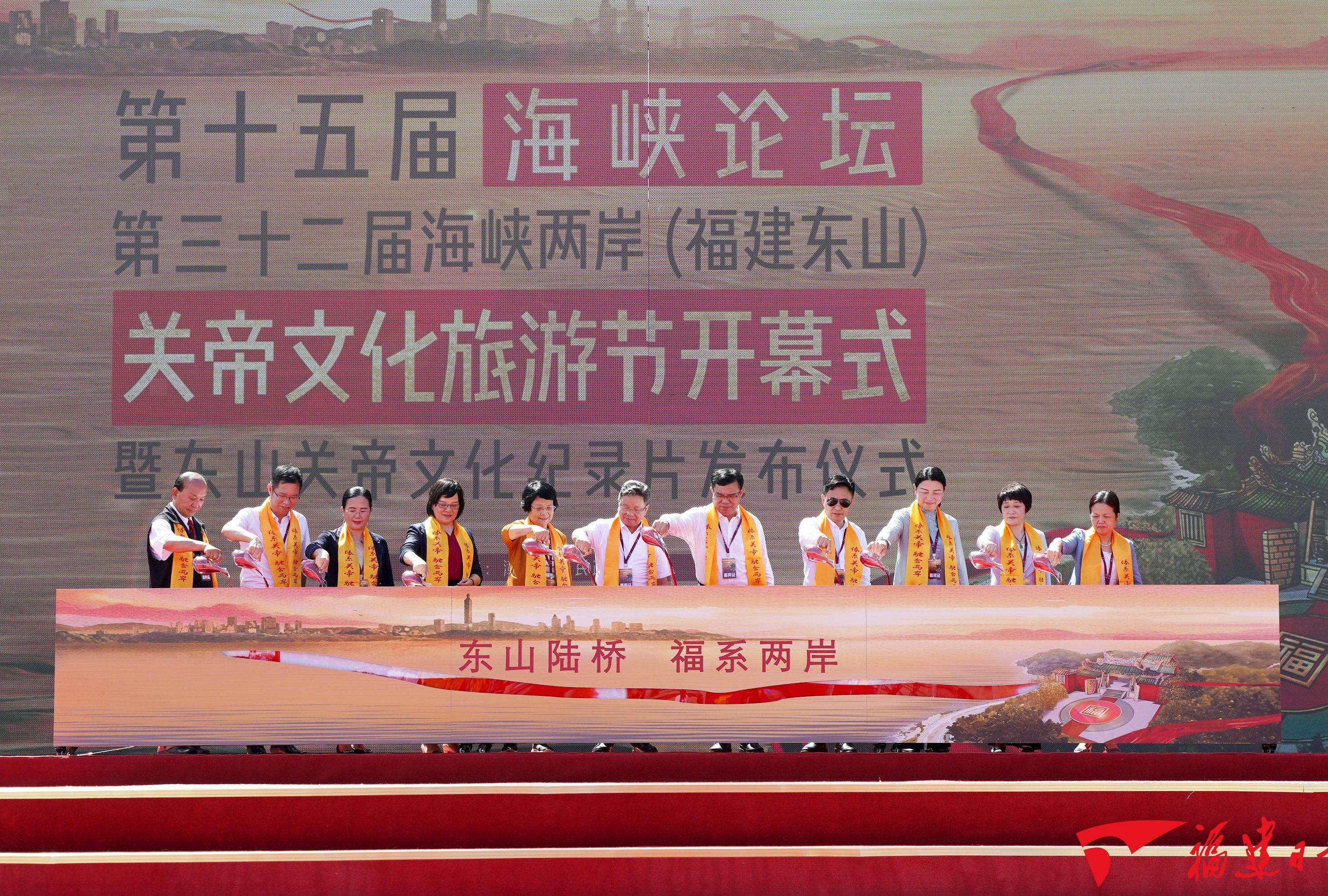 福建日报·新福建客户端6月30日讯 (记者 李妙珠)关帝忠义传千古,两岸欢聚一家亲。6月30日上午,第十五届海峡论坛· 第三十二届海峡两岸(福建东山)关帝文化旅游节暨东山关帝文化纪录片发布仪式开幕。来自两岸的各界人士1600余人齐聚东山,共襄盛典。