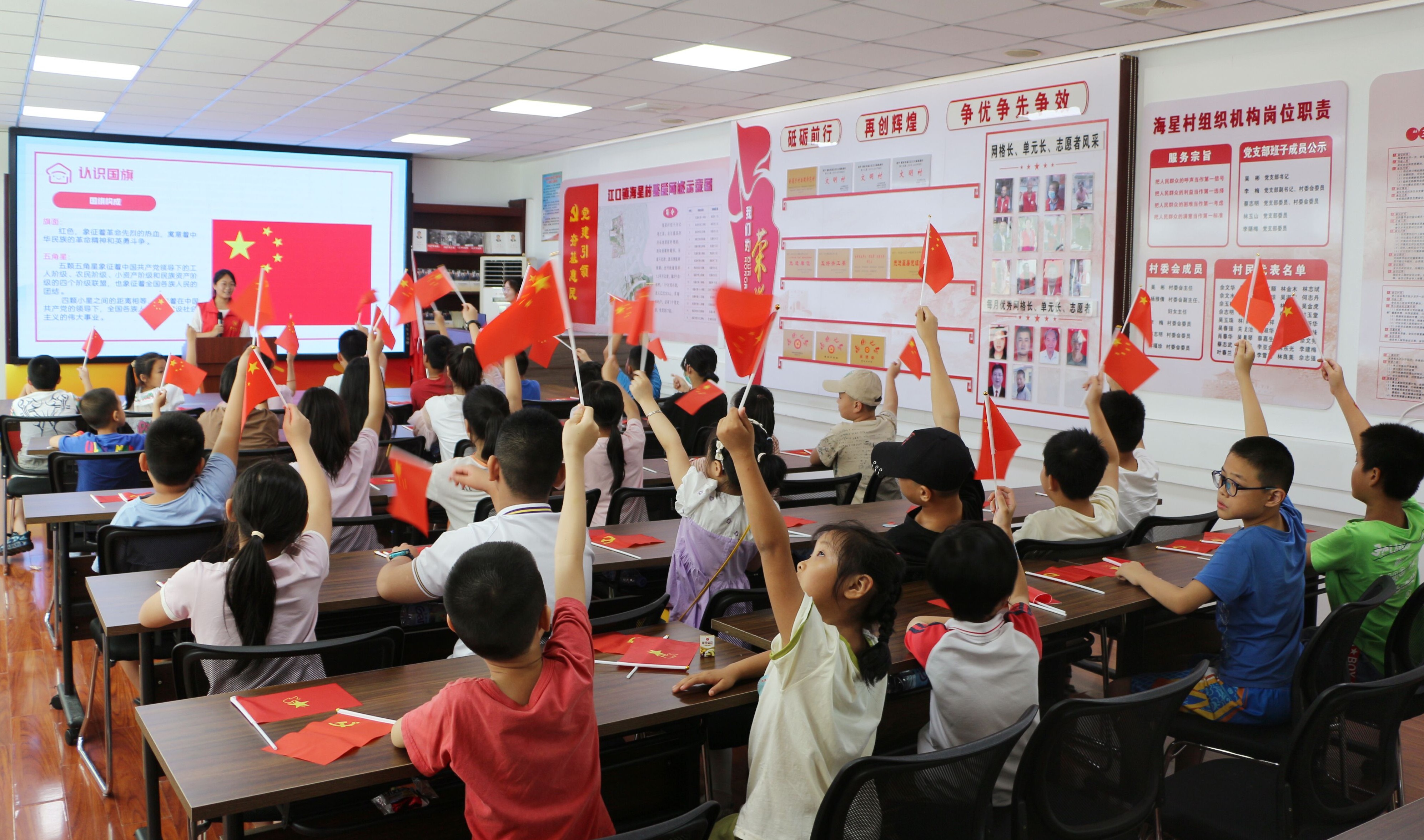 福建日报·新福建客户端 6月30日讯(记者 陈盛钟 通讯员 王彦菲 周鑫涛)“五星红旗,你是我的骄傲,五星红旗,我为你自豪……”30日上午,位于莆田涵江区江口镇海星村的童心港湾活动室传出阵阵悠扬的歌声。莆田学院管理学院下乡支教的大学生们,正带着海星村的50名“洋留守儿童”倾情传唱红歌。