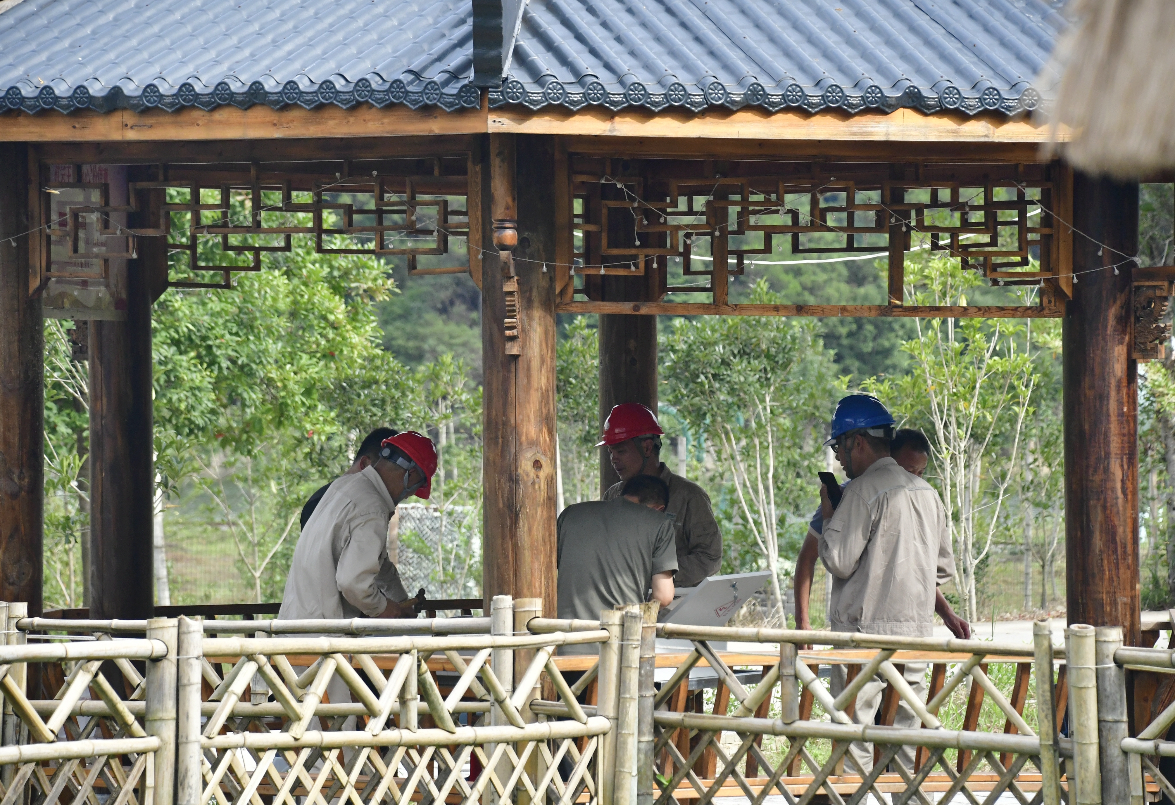 福建日报·新福建7月6日讯(通讯员 蔡政)昨日,在花桥乡招沙甲村同心园景区,国网松溪县供电公司花桥供电所员工正在为景区智能电表进行增容改造,以实际行动助力当地乡村旅游产业火热发展。