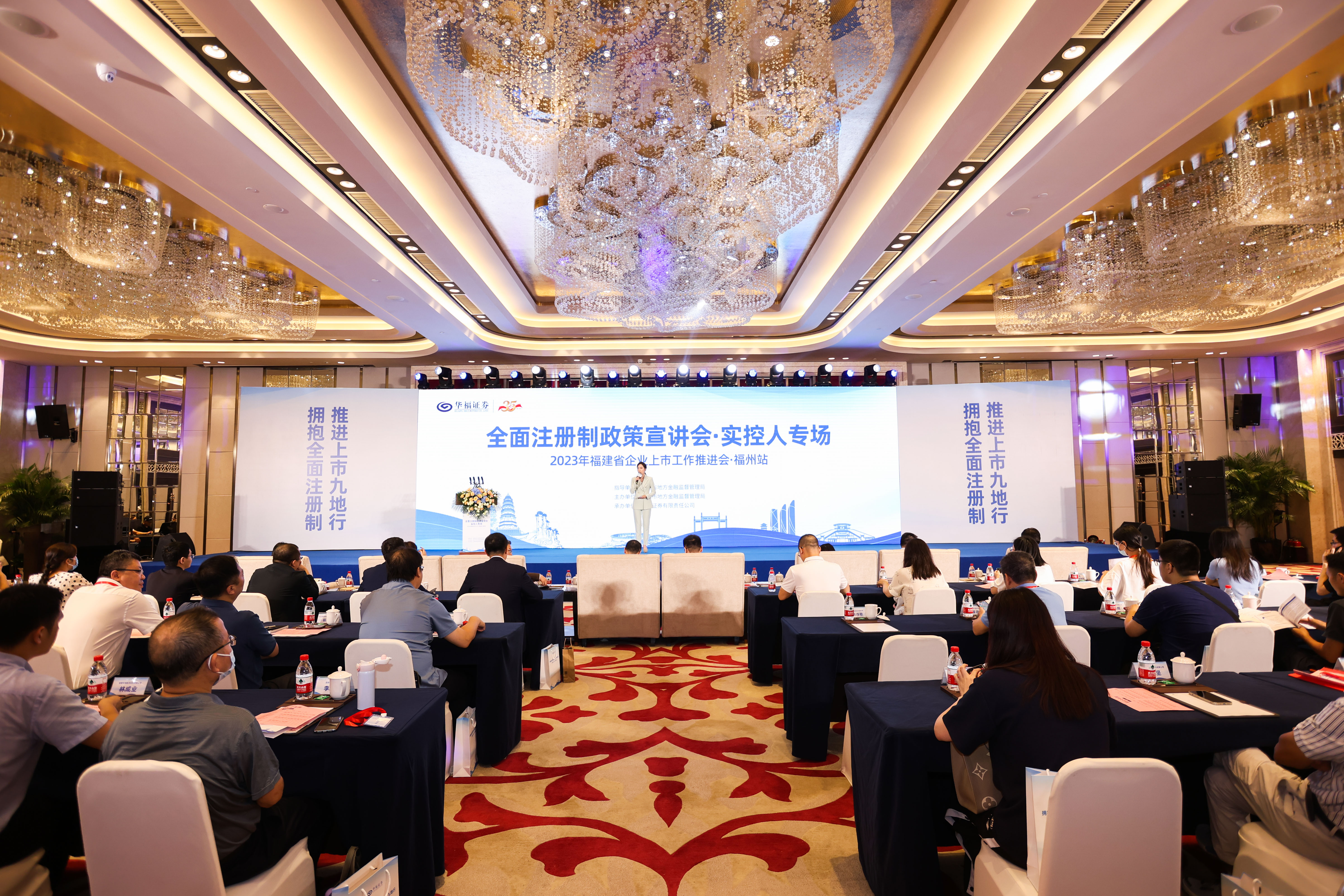 7月6日,由福建省地方金融监督管理局指导、福州市地方金融监督管理局主办、华福证券承办的“2023年福建省企业上市工作推进会·福州站”之“全面注册制政策宣讲会·实控人专场”活动在榕举行。来自政府部门、监管单位、金融机构以及福州市知名企业实控人等80余位嘉宾齐聚有福之州,共商闽企通向资本市场之路。