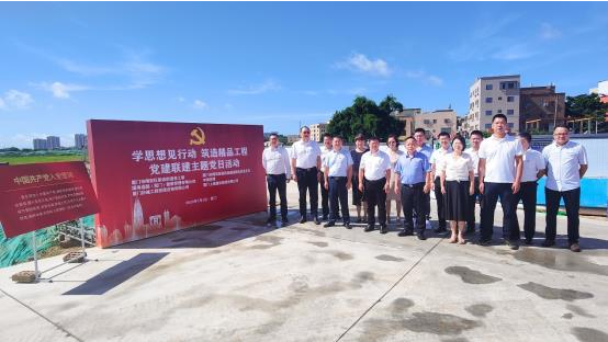 7月4日,厦门市翔安区新店街道党工委、溪尾社区党总支,国寿嘉园(厦门)健康管理有限公司,中海管理,厦门协诚工程管理咨询有限公司,厦门上建建设集团有限公司,在国寿嘉园·厦门乐境项目现场开展“学思想见行动、筑造精品工程”党建联建主题党日活动,中海管理国寿嘉园·厦门乐境项目总监何滢同志主持活动。