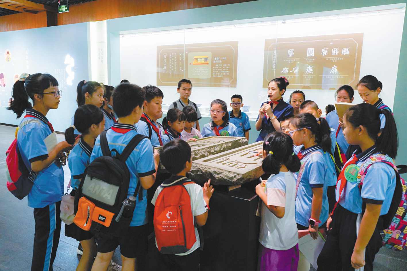仪式结束后,营员们跟随讲解员进展厅参观。后续的活动也会在新学期开学后以专题讲座、研学实践、现场教学、文博专场等形式灵活开展。