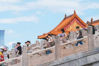 随着暑假来临,北京暑期游逐渐升温,各地游客来到北京参观游览。图为游客在故宫。