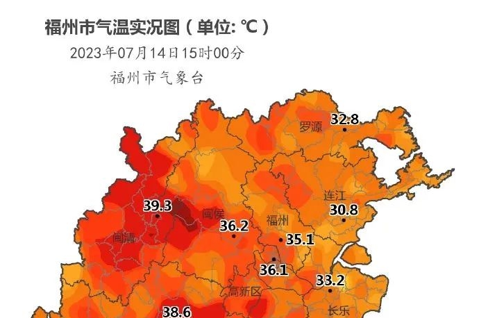 福州多地气温实况值突破40℃