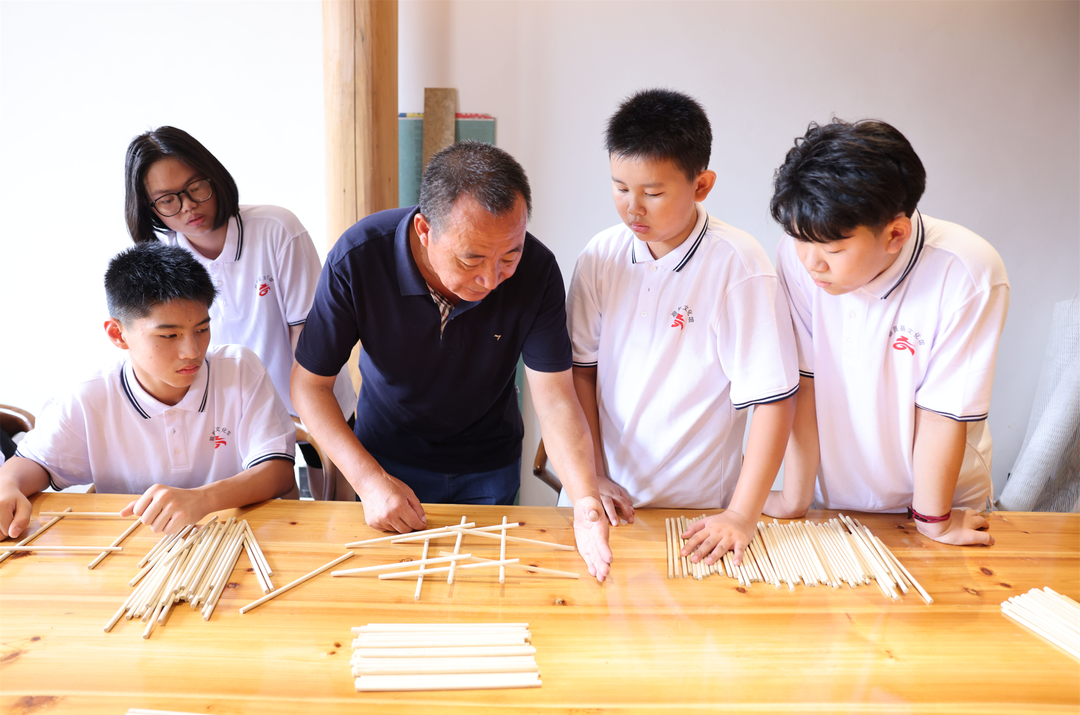 研学活动形式多样、寓教于乐。活动中,市级传承人徐明炜介绍非遗项目的发展历史,用讲解和提问相结合的方法,激发学生们的浓厚兴趣。省级传承人徐云双则向学生们展示了木拱廊桥的制作技艺,讲解了筷子桥制作步骤和原理。同学们在传承人的指导下,体验用筷子搭建一座桥,探索力学的原理,感受到了纯木条结构的神奇和木拱廊桥的魅力。