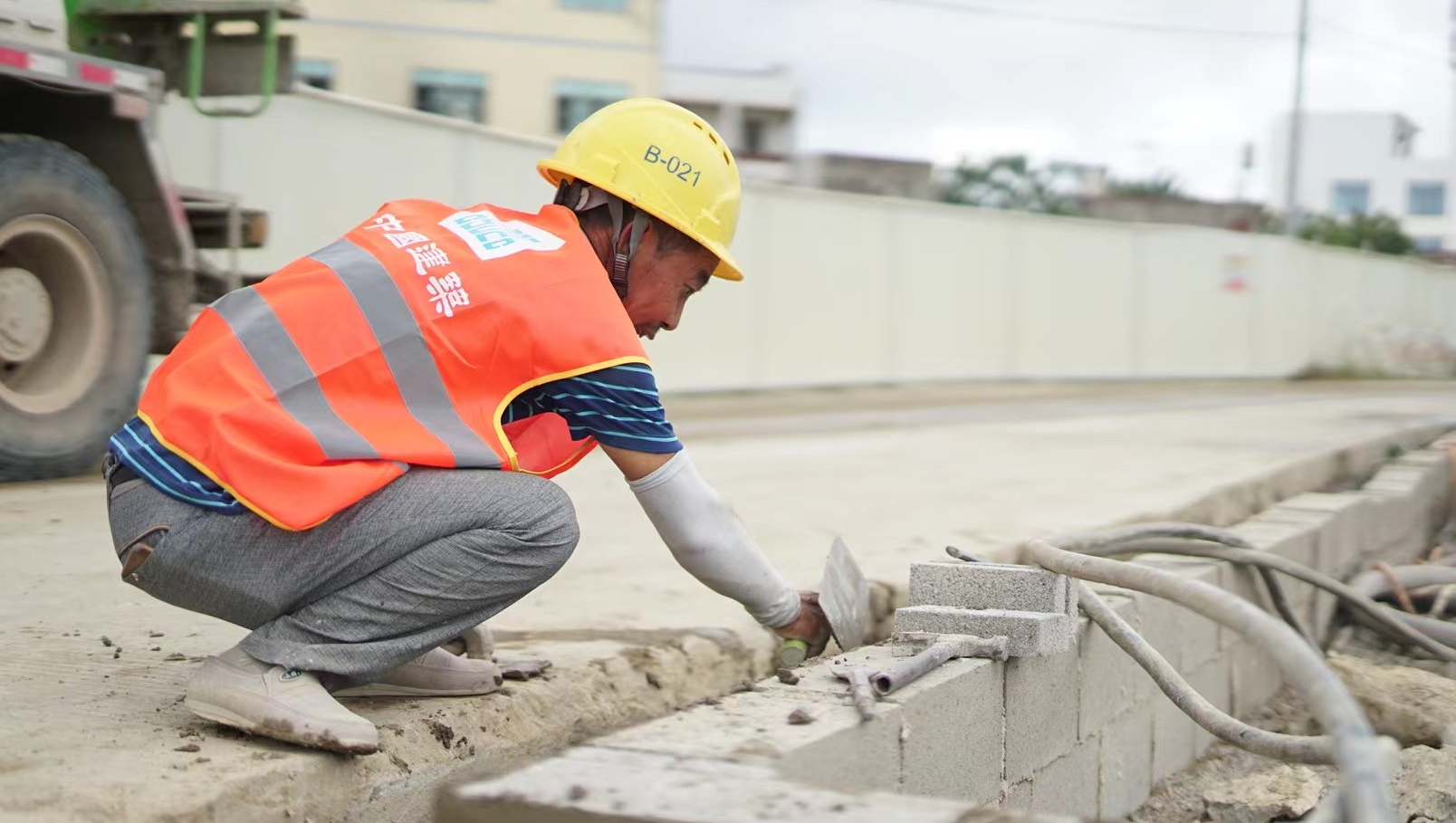 在清塘大道北侧的栖鹭雅居项目施工现场,工人们正紧张有序地进行基坑支护施工和楼层柱、梁、楼板的板模体系加固,截排水措施及临时用电检查。