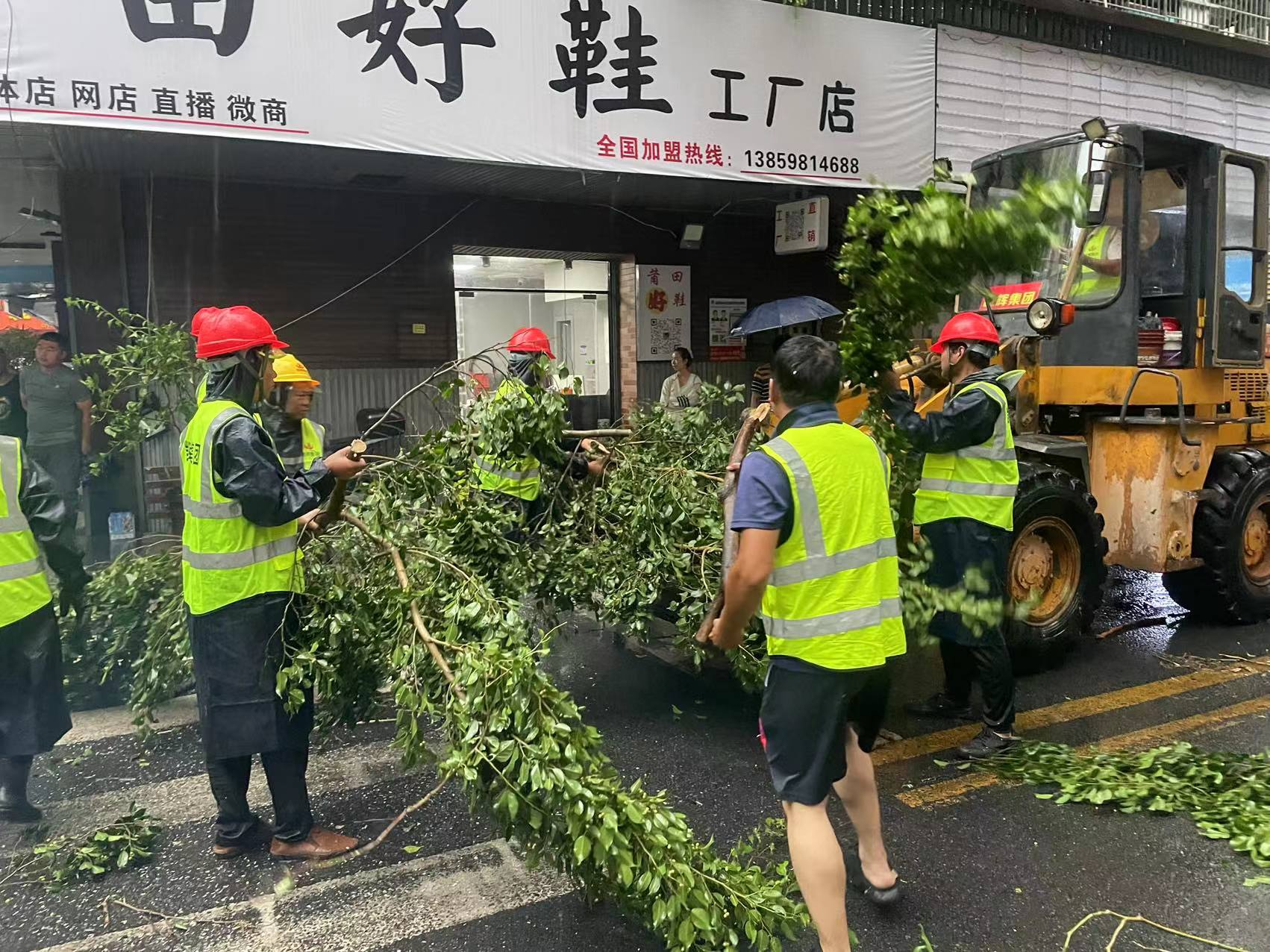 福建日报·新福建客户端 7月29日讯(记者 陈盛钟 通讯员 陈丽君)29日,在城厢区龙桥街道荔园路安福段、荔城大道北磨段、凤达雅景小区等地,由凯辉集团组织的抢险队出动铲车、装载车,配备油锯、铁锹等救援设备,与街道干部等一道开展应急抢险作业,切割、清运倒伏树木,保障道路安全畅通。