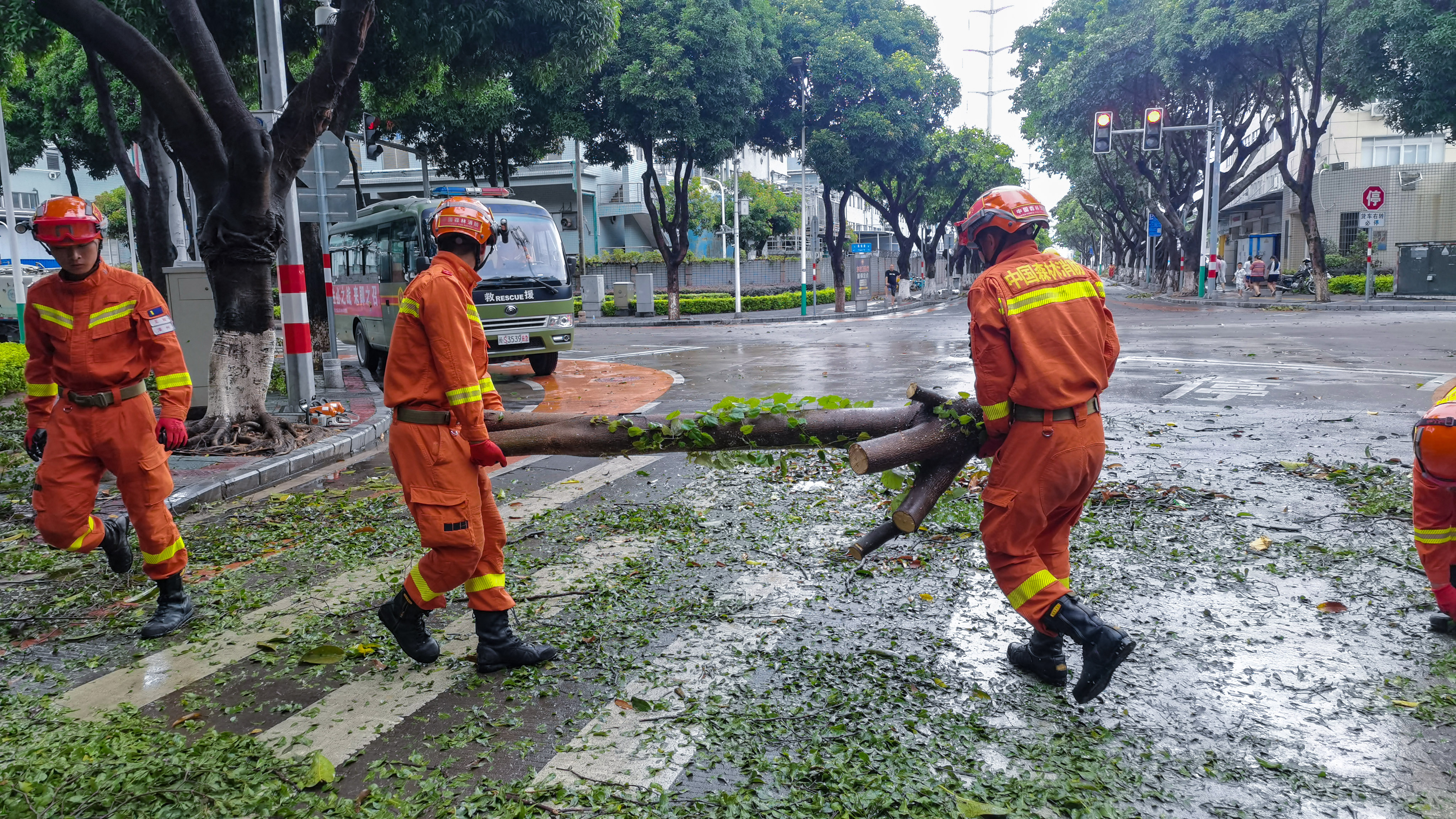 截至当日19时,救援人员共处置5处倒木险点,清理倒木15棵,清通道路约1.2公里。