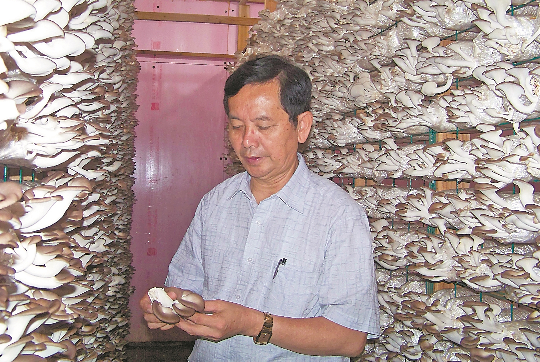 涂改临在察看秀珍菇生长情况。 (资料图片)