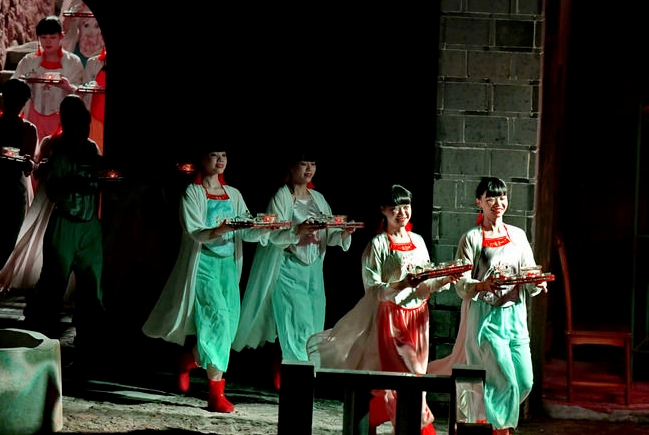 8月2日晚,演员在武夷山《印象大红袍》剧场为游客演出。新华社发(邱汝泉 摄)