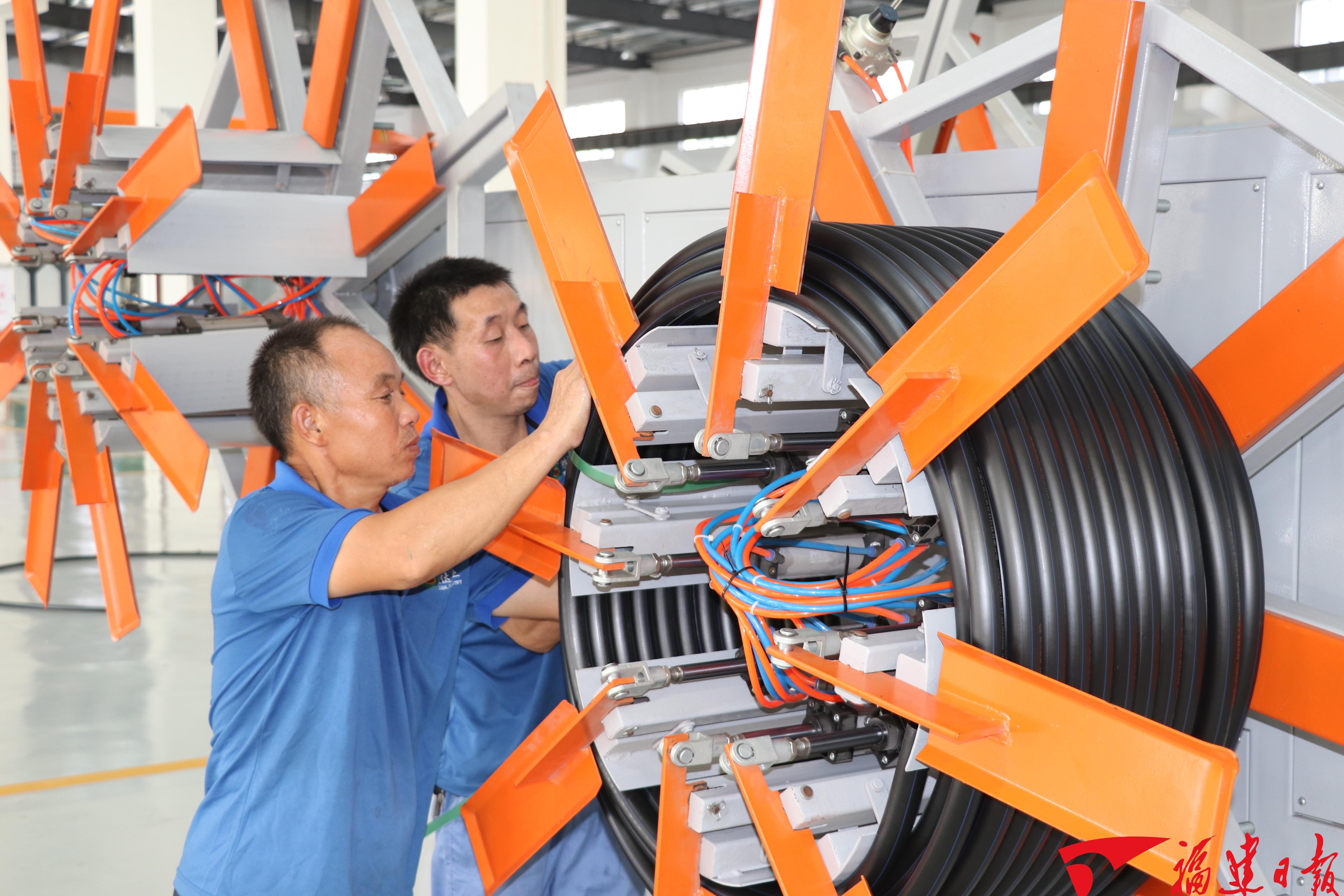 投料、定型、冷却、切割……短短5分钟,一根6米长的管材便从设备里被挤压推送出来。连日来,福建新胜达新材料科技有限公司产销两旺,HDPE双壁波纹管生产线上工人正忙着赶制新订单。