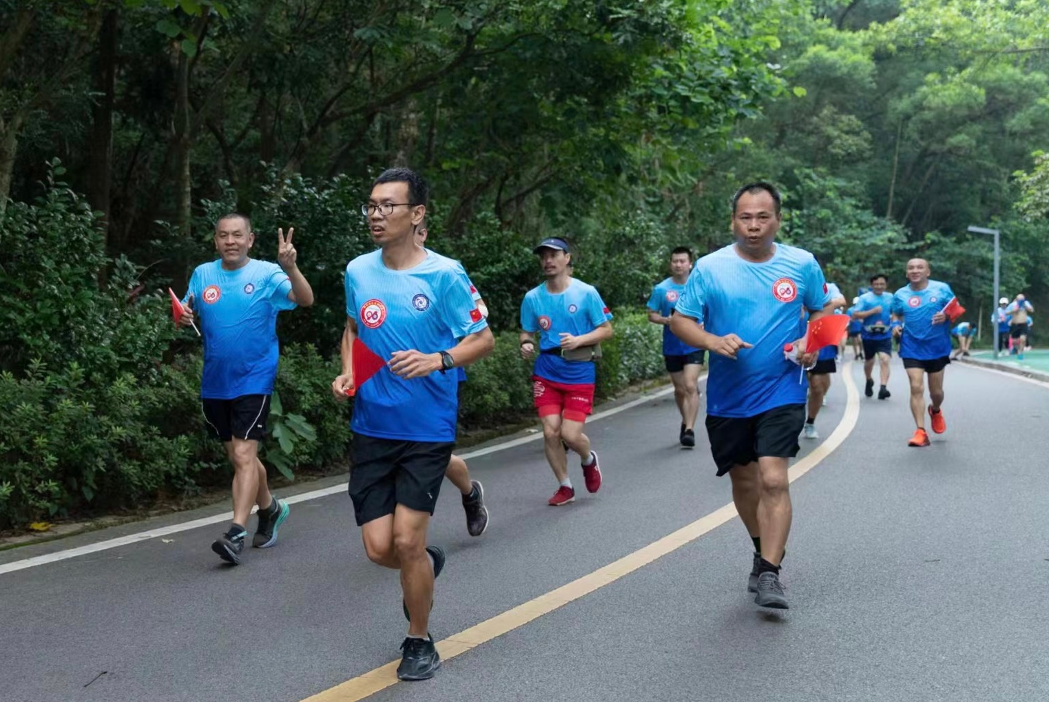 “五星红旗迎风飘扬,胜利歌声多么嘹亮......”起跑前,全体人员合唱了歌曲《歌唱祖国》,气势磅礴,鼓舞士气。7点10分,随着一声哨响,全体人员迅速冲出起跑线,迎着朝阳,热情满满,大家以这种健康文明、积极向上、充满活力、团结奋进的健康跑形式,共同庆“八一”建军节,成为了石竹湖畔一道靓丽的风景线。