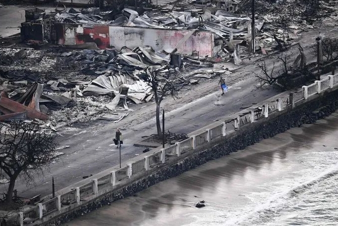留下的残骸,还在冒出缕缕浓烟,在碧蓝色的海景映衬下,显得无比凄凉。这一幕让所有在毛伊岛度假、居住的人都难以相信,但真实发生了。