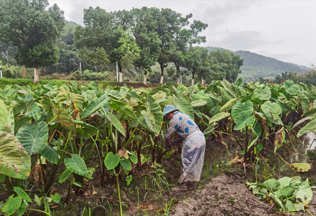 在西洋镇下洋村的芋田里,田似塘,芋叶似荷叶,仿佛置身于荷塘之中。眼下,西洋镇的两千亩芋子已进入丰收期,芋农们抢抓农时集中采挖芋头,叶子颤动,田野里便起了一道凝碧的波痕,洋溢着丰收的喜悦。