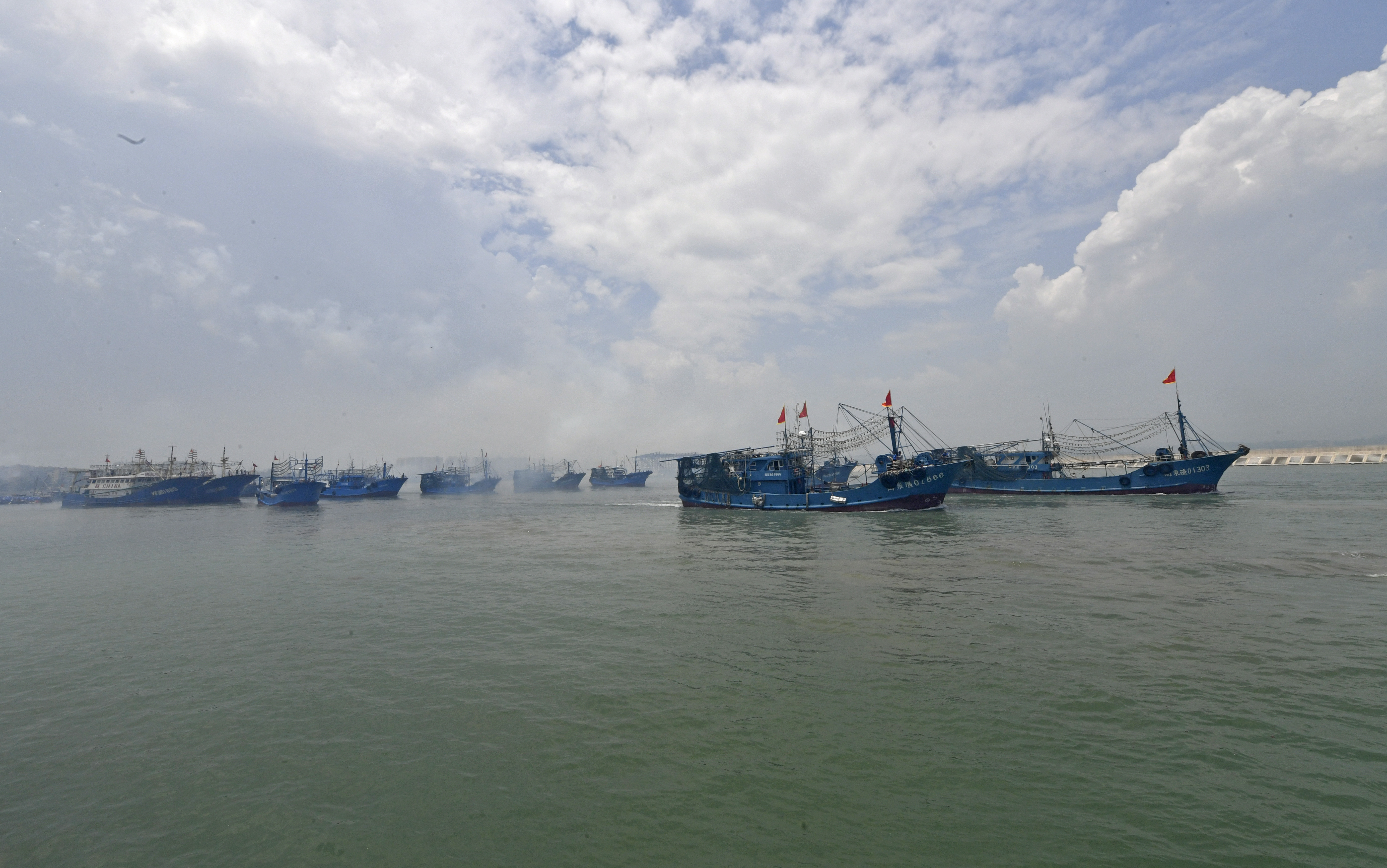 渔民燃放鞭炮开渔出发 洪坤泽 摄