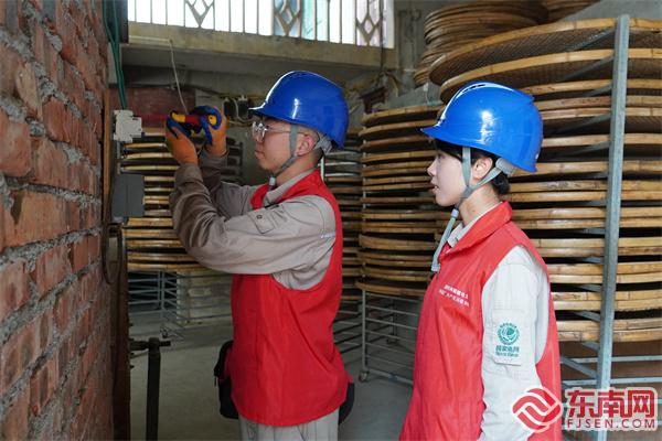 供电员工检查制茶企业用电设备。国网三明供电公司供图