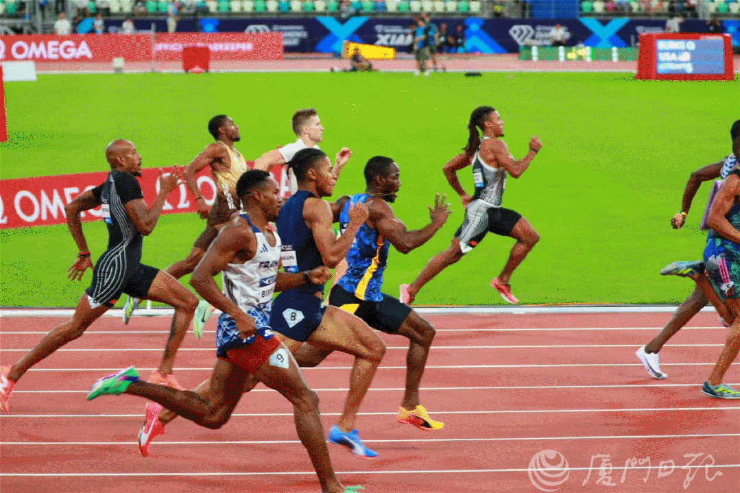 压轴大戏男子110米栏比赛,牙买加选手、奥运冠军帕切门特跑出12秒96,夺得冠军。他赛后说,非常喜欢厦门这个美丽的海滨城市,希望下一届还能再来厦门比赛。美国名将罗伯茨和霍洛威分获第二第三。