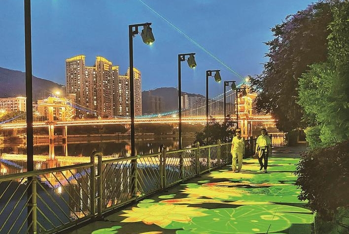市区“一河两岸”夜景扮靓步道(林文斌 摄)