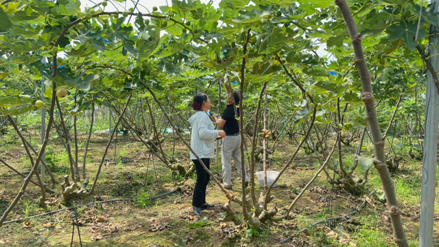 无花果采摘期较长,可以从六月持续到十一月初。每年一到采摘期,他就会雇请附近村民帮忙采摘和打理。