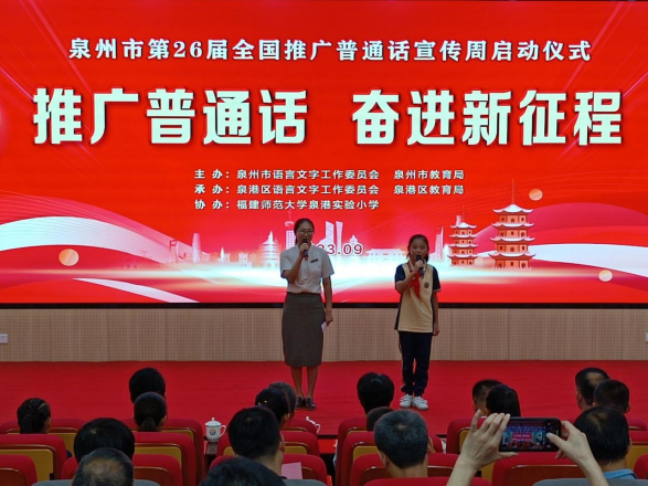 每年9月份第三周为全国推广普通话宣传周。日前,由泉州市语委、市教育局主办,泉港区语委、区教育局承办的主题为“推广普通话·奋进新征程”泉州市第26届全国推广普通话宣传周启动仪式在福建师范大学泉港实验小学举行。
