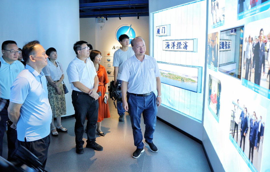 当天,市政协资源环境和农业农村委一行及相关专家学者,特邀研究员陆续走进高崎闽台中心渔港(避险中心)、夏商国际水产交易中心、杏林大桥下船舶停泊点,了解渔港经济圈融合发展情况和船舶停泊示范点管理情况。随后,委员们走进厦门海洋经济公共服务中心,这里是厦门海洋高新产业集聚发展的“阵地”和对外展示交流的重要窗口。厦门海洋经济公共服务中心集展示交流、招商对接、成果转化、众创孵化、公众科普等功能为一体,自2020年12月揭牌启用以来,定期举办对接会、推介会,常态化推动海洋科技成果转化和产业化。