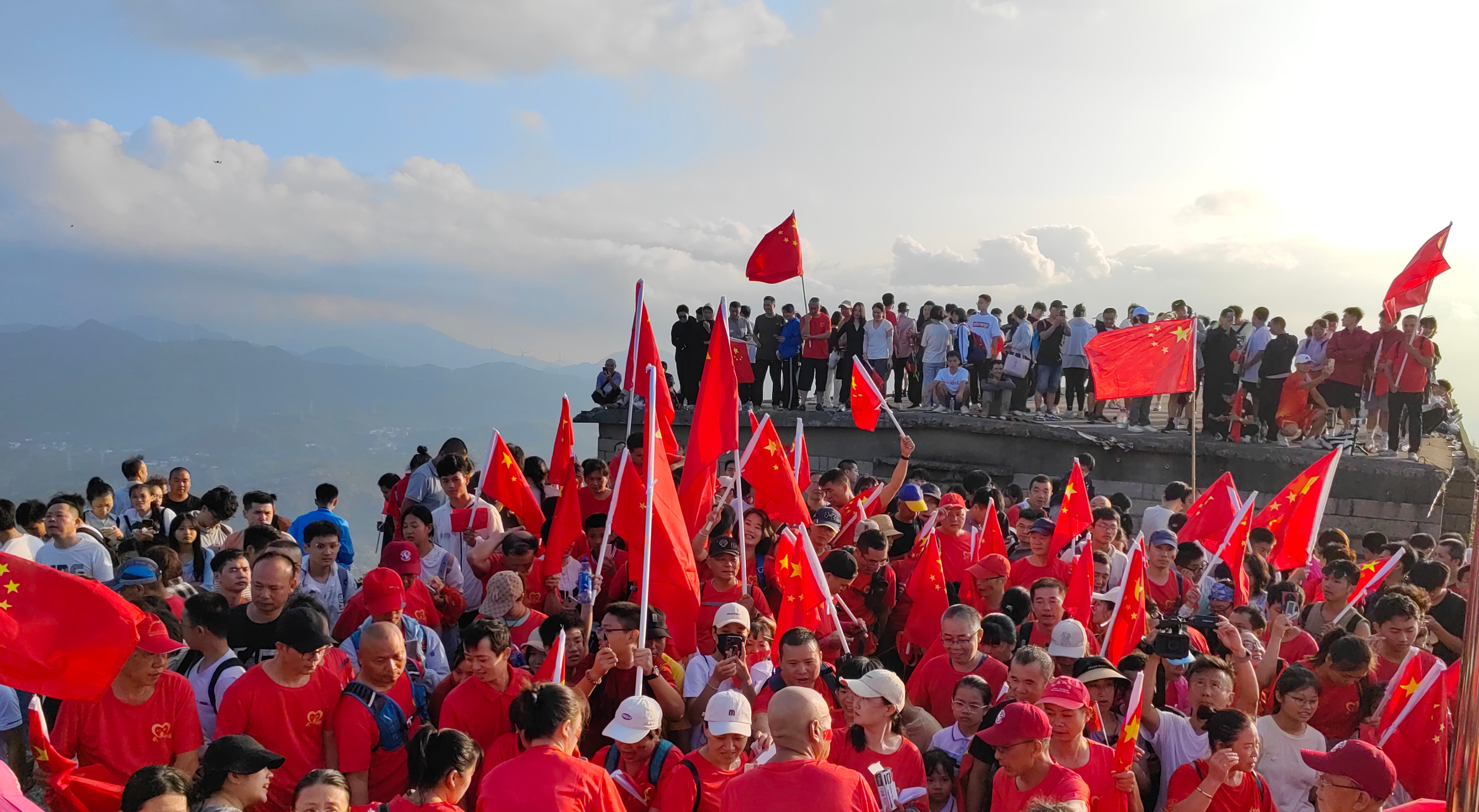 福建日报·新福建客户端 10月1日讯(记者 林剑波 通讯员 刘志军)10月1日凌晨,莆田涵江囊山海军顶秋风习习,人头攒动,数百名各界户外运动爱好者自发组织,统一着装,齐聚山巅,共同举行升国旗仪式,庆祝祖国母亲74周年华诞。