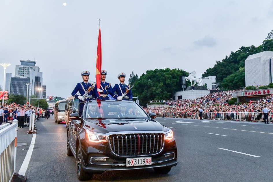 5时42分,国旗护卫队员乘车从位于福州市通湖路的三坊七巷消防救援站出发,驶向五一广场。