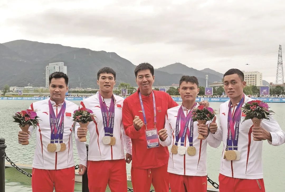 “能拿到2金1银,所有队员表现都很棒!作为一项中国传统文化活动,赛龙舟由来已久,现已是国家级非物质文化遗产。在本次亚运会中,没有拿到三金,心里难免有一点失落,但这也将激励我们继续努力,勇攀高峰。”杭州亚运会龙舟项目男队主教练林敬伟说。10月4日至6日,杭州第19届亚运会龙舟项目比赛在温州龙舟运动中心举办,中国体育代表团在龙舟男子200米直道竞速赛决赛、龙舟男子500米直道竞速赛决赛、龙舟男子1000米直道竞速赛决赛中获得2金1银的好成绩,这也是中国男子龙舟队亚运会历史最好成绩。