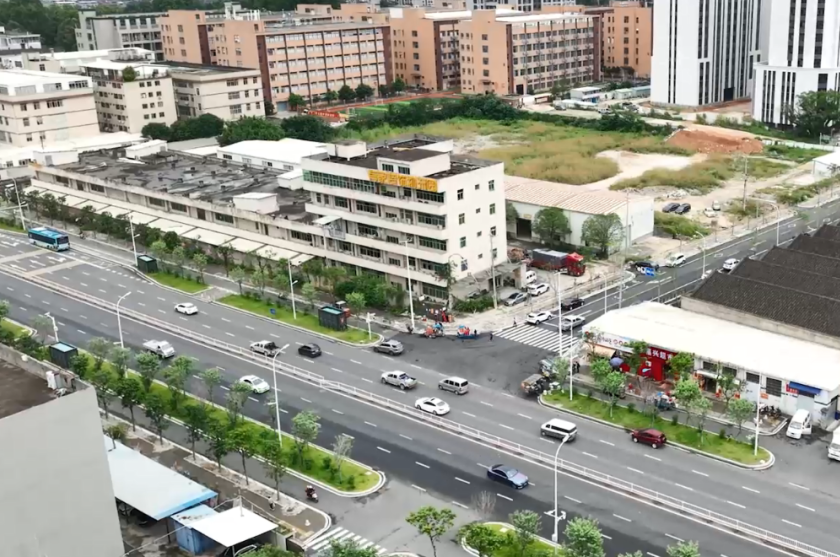 记者来到兴业支路,看到路面的交通指示标线十分清晰,道旁错落栽植了蓝花楹等树种,全新的沥青路面上车流如梭。