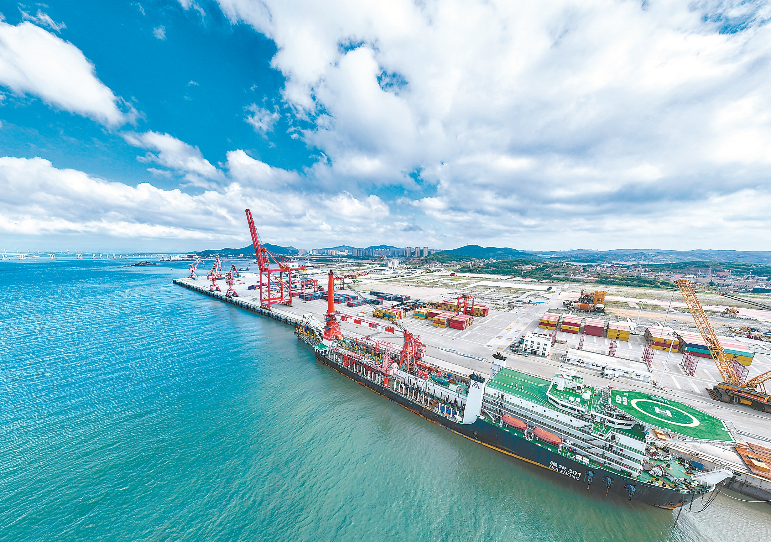 为什么是金井港区?“金井港区三面临海,前沿水深达15.4米,这里航道深邃、回旋水域畅通,泊位还设有集装箱滚装运输通道、桥吊等,十分适合大型船舶靠港作业,是不可多得的天然良港。”实验区港务发展有限公司党委委员、副总经理赵欢说。