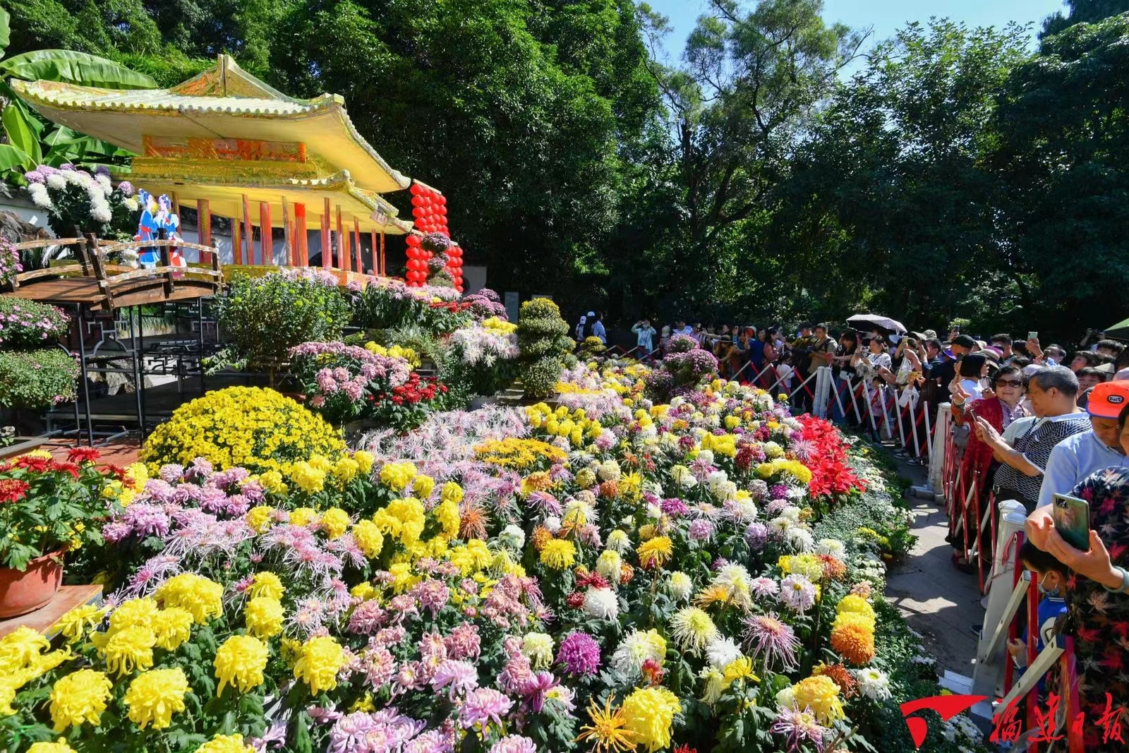 大批游客在各种造型的菊花前观赏 福建日报记者 游庆辉/摄