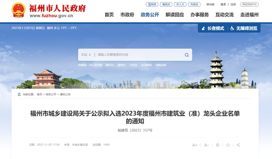 福州市城乡建设局关于公示拟入选2023年度福州市建筑业(准)龙头企业名单的通知