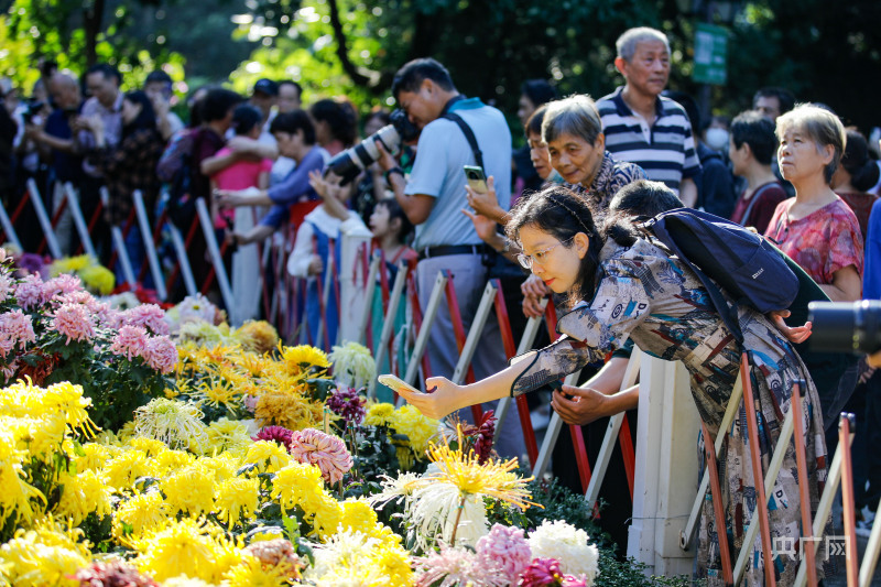 菊花展期间,群众纷纷前来观赏和拍照留念(央广网发 谢贵明 摄)