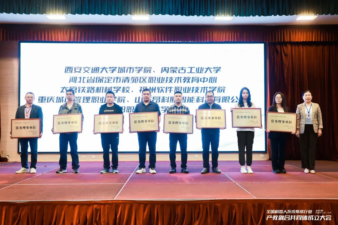 福州软件职业技术学院智能产业学院智能产品开发与应用教研室负责人蔡卓翊受邀参加了本次大会,并代表学院接受了全国机器人系统集成行业产教融合共同体的授牌。全国机器人系统集成产教融合共同体的成立,旨在构建协同创新发展机制,充分调动各方积极性,汇聚产教优势资源,实现人才培养、技术创新、科技研发、成果转移、社会服务等全要素融合。