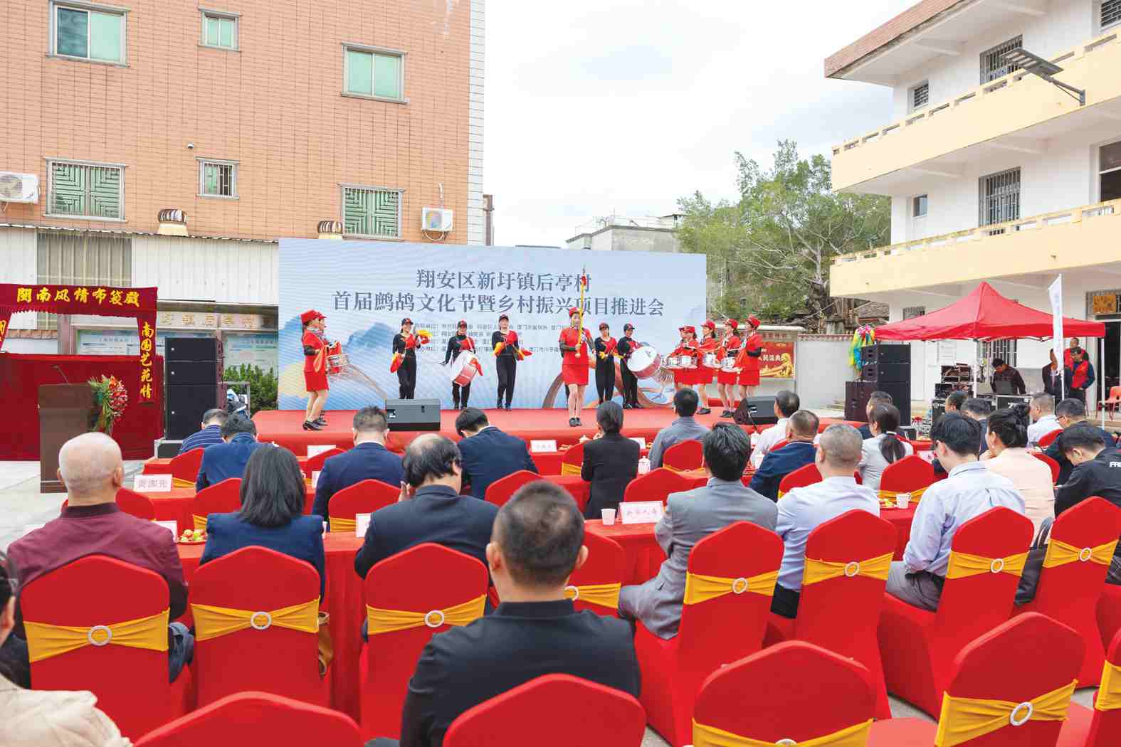 11月14日上午,后亭村举办首届鹧鸪文化节暨乡村振兴项目推进会。市委组织部、翔安区委区政府及相关部门、市医保局、市农业农村局、新圩镇政府,市医保学会、金融机构、爱心企业等单位代表共近百人齐聚后亭村,与村民共庆佳节、共赏乡俗、共品乡食、共话振兴。
