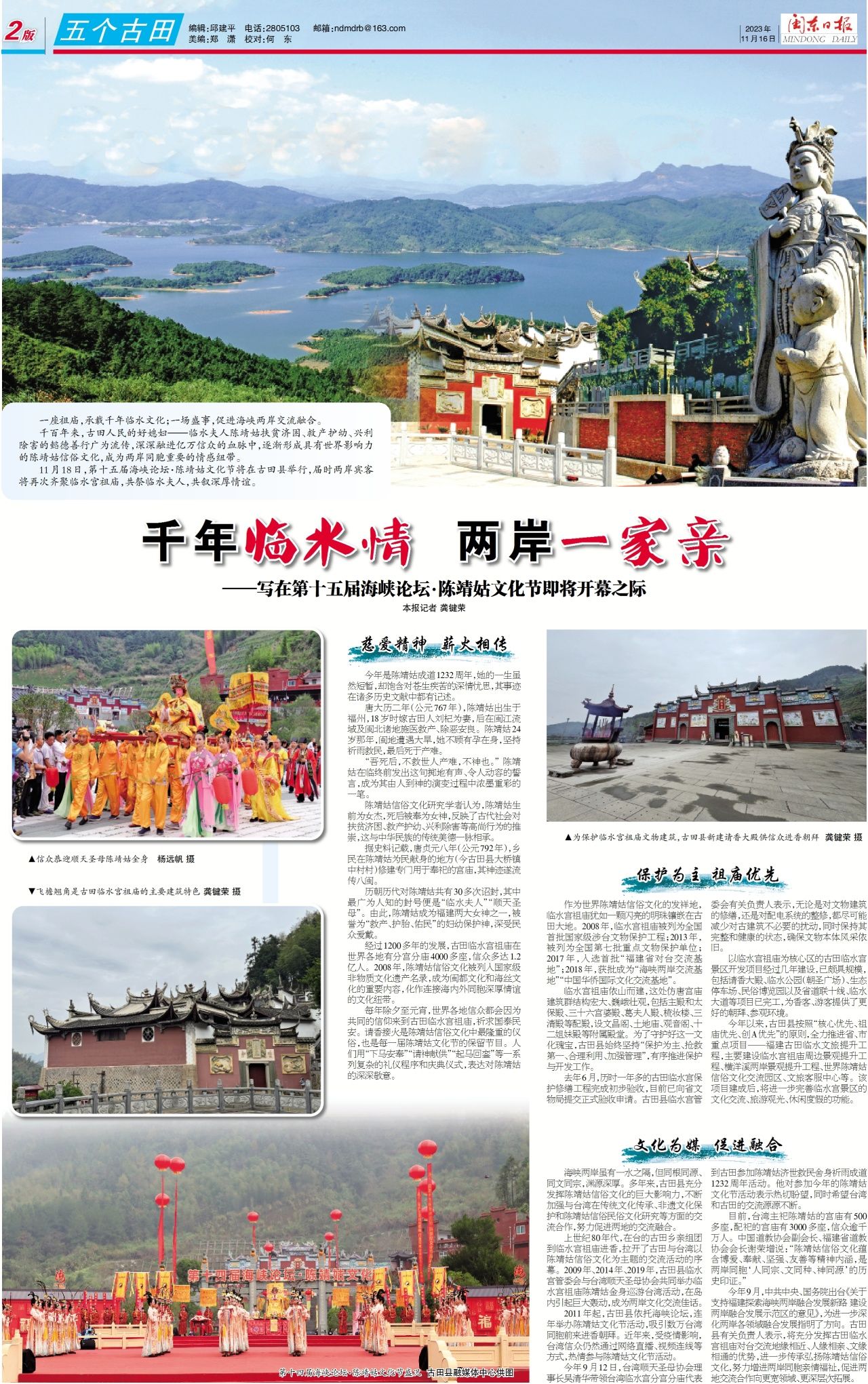 今年9月,中共中央、国务院出台《关于支持福建探索海峡两岸融合发展新路 建设两岸融合发展示范区的意见》,为进一步深化两岸各领域融合发展指明了方向。古田县有关负责人表示,将充分发挥古田临水宫祖庙对台交流地缘相近、人缘相亲、文缘相通的优势,进一步传承弘扬陈靖姑信俗文化,努力增进两岸同胞亲情福祉,促进两地交流合作向更宽领域、更深层次拓展。