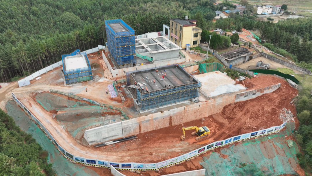 11月15日,在郑墩镇自来水厂,工人们正在厂区内开展清水池施工作业,该厂在原来的基础上进行扩容新建,可为郑墩镇下辖的所有集镇提供生活用水。