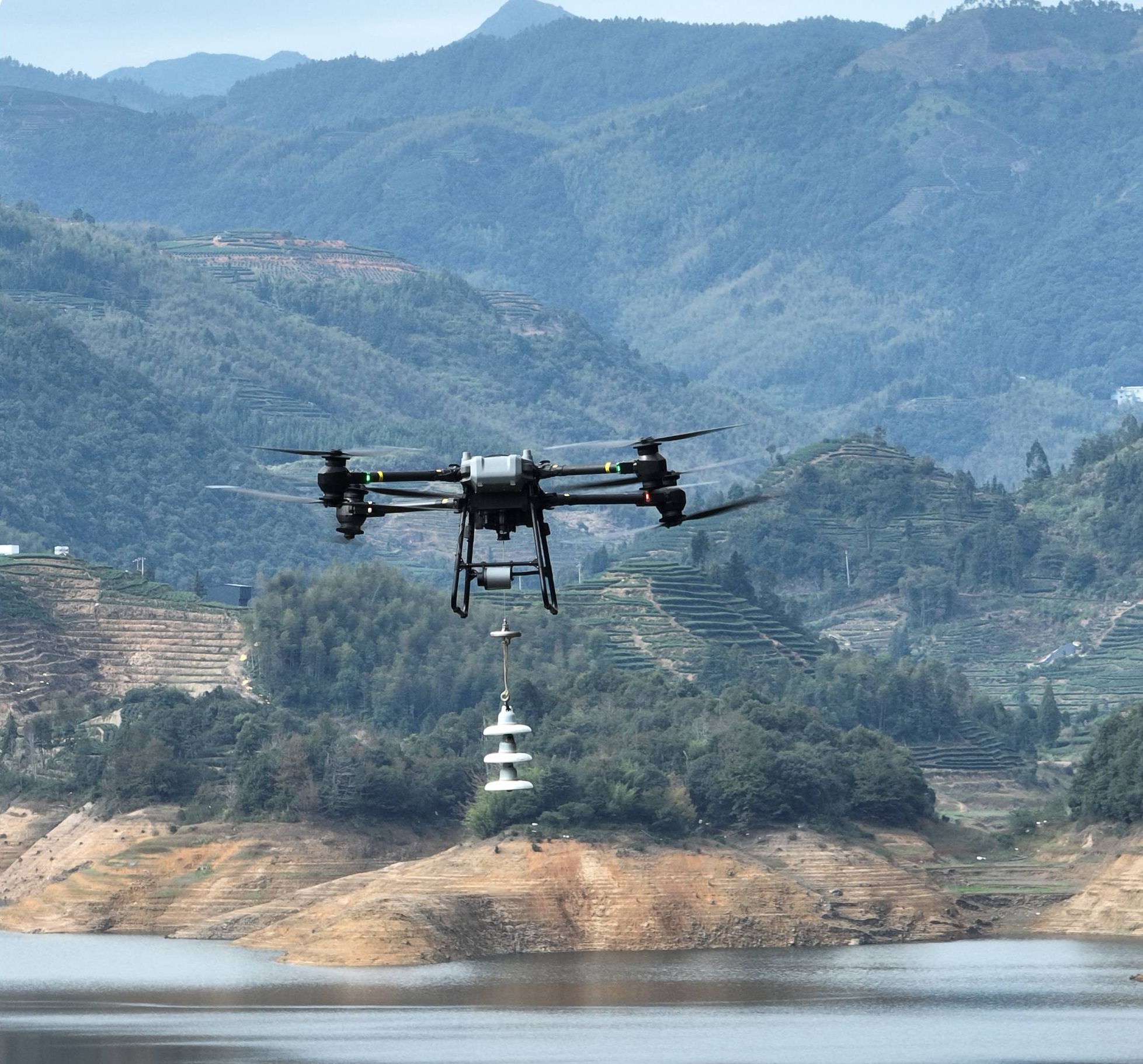 据了解,10千伏溪坑线配套送出工程跨越多座大山,山谷地势险峻,现场应用无人机携牵引绳跨越山谷、河流放线施工,整个牵引跨越工程只需几分钟,解决了人力放线“受环境限制,效率低风险大”难点。同时,现场应用载重无人机运输技术,精准吊载绝缘子串、塔材至青田分线塔基附近,载重无人机起飞至目的地往返一趟仅需3分钟,吊运往返20趟,完成了1吨建材物资运送,耗时仅1小时,破解电力设备上山“耗时、耗人、耗力”的难题。此外,该公司还在现场演练了无人机喷涂RTV作业,该技术有效解决了更换污闪绝缘子“作业需要停电”的痛点,提升绝缘子抗污、抗潮能力,降低线路污闪概率。