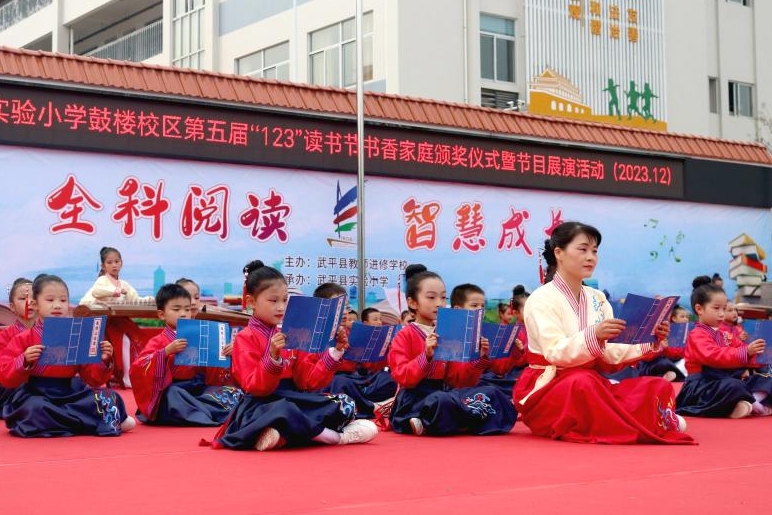 12月1日,武平县实验小学举办主题为“全科阅读,智慧成长”的第五届“123”读书节活动。武平县教育局、县教师进修学校领导、全县各学校教师代表和实小两个校区全体师生5000多人共同享受一场阅读的盛宴。