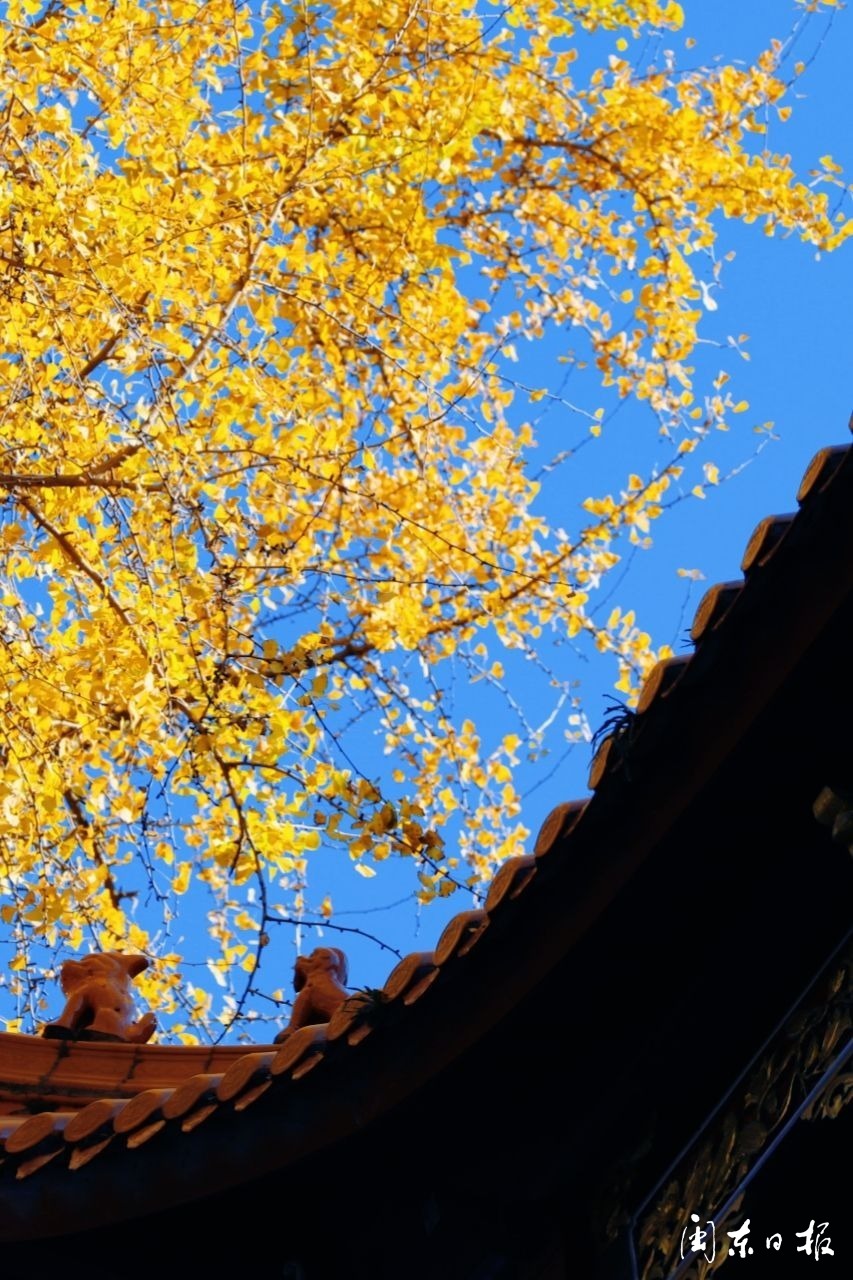 许多游客慕名而来,他们走在寺庙的庭院中,欣赏着满眼的金黄,聆听着风吹过树叶的婆娑声,享受着这份宁静而浪漫的冬日盛景。每一个角落,每一片银杏叶,都成为了相机下的焦点,定格了这份美丽的景色。