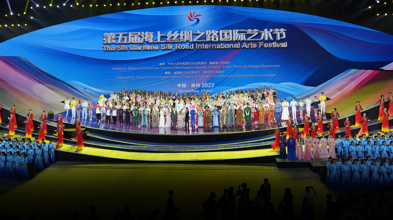 闽南网12月8日讯(闽南网记者陈玉玲 洪方博涛 吴圳烽 文/图)多元文明,美美与共。8日晚,由文化和旅游部、福建省人民政府主办,省文旅厅、泉州市人民政府承办的第五届海上丝绸之路国际艺术节在泉州正式开幕。邀请43个国家和地区、52个艺术团体,1600多名艺术家、专家学者、国际友人等共襄盛会,再现中外文明交流、多元文化汇聚、多国民众联欢的生动图景。