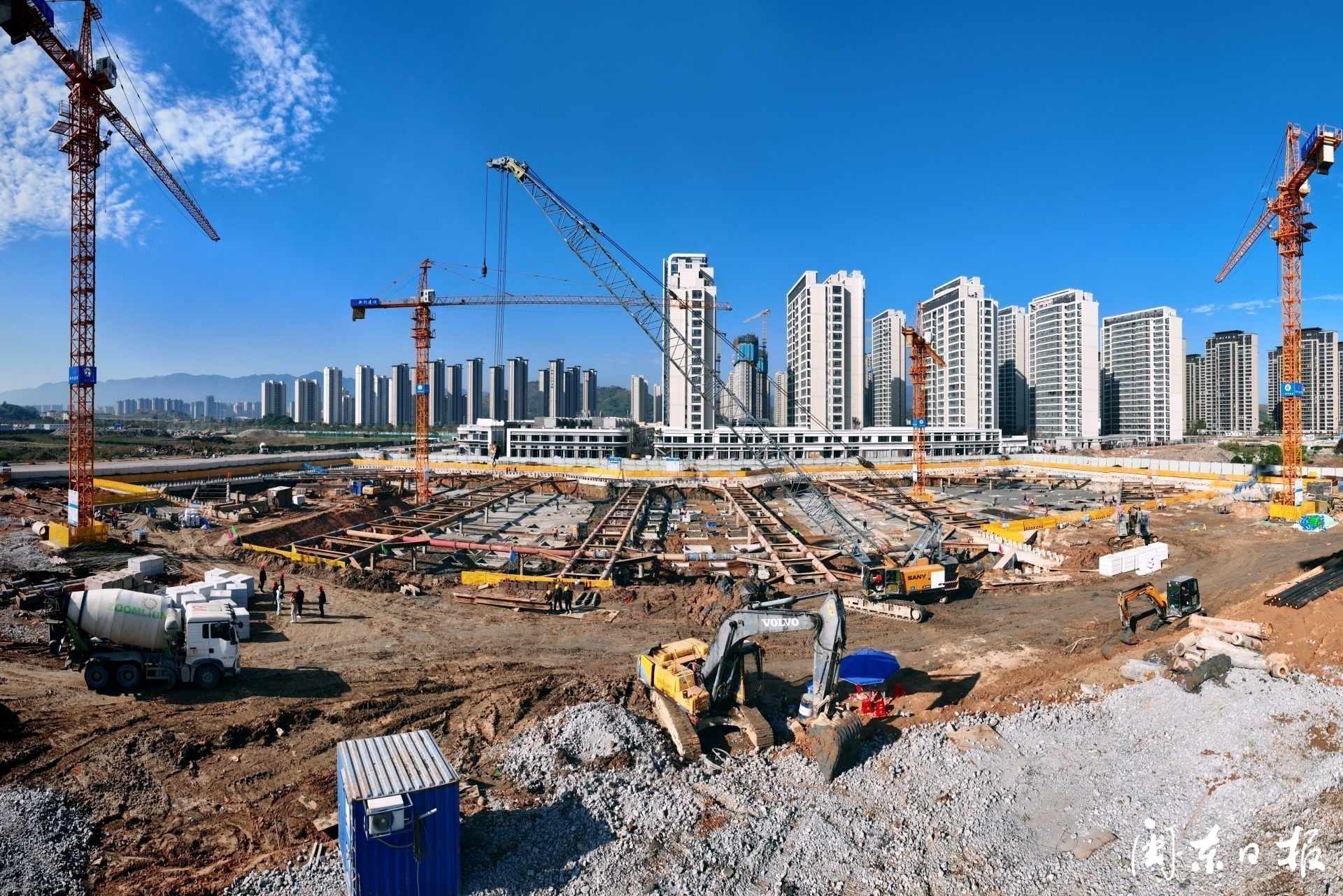 近日,蕉城中学东校区项目建设现场,只见塔吊耸立,挖机来回穿梭,土方开挖、桩基铺设……整个施工现场繁忙而有序。