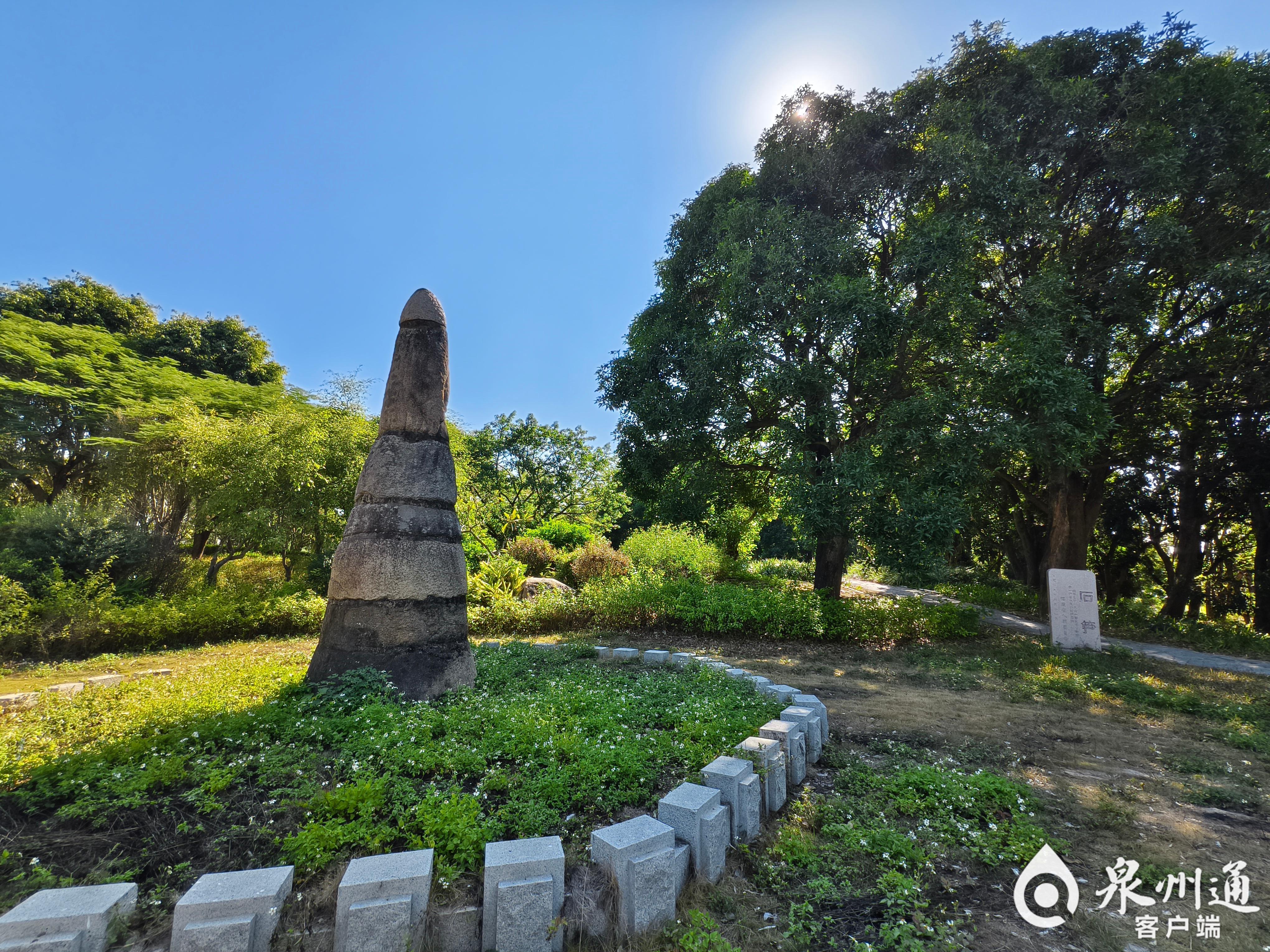 在很多老泉州人的记忆里,都有浮桥石笋。浮桥石笋位于泉州临漳门外接官亭附近(此地古属浮桥黄甲街),高约3米,由五段圆柱体花岗岩垒叠而成,下段较粗,上段较细,末端略作尖锥状,整体造型似巨笋耸立,故而得名。自古以来,民间将其视为图腾崇拜类的祖形器,所以又称它为“石祖”。泉州民俗信仰崇拜石笋,认为膜拜石笋可促进人口的繁殖和物质生产的发展。浮桥石笋是古泉州最重要的历史文化景观之一,1961年就被确定为福建省第一批省级文物保护单位。据历史研究学者考证,像浮桥石笋如此大型的祖型器遗址遗迹在全国共有28处。
