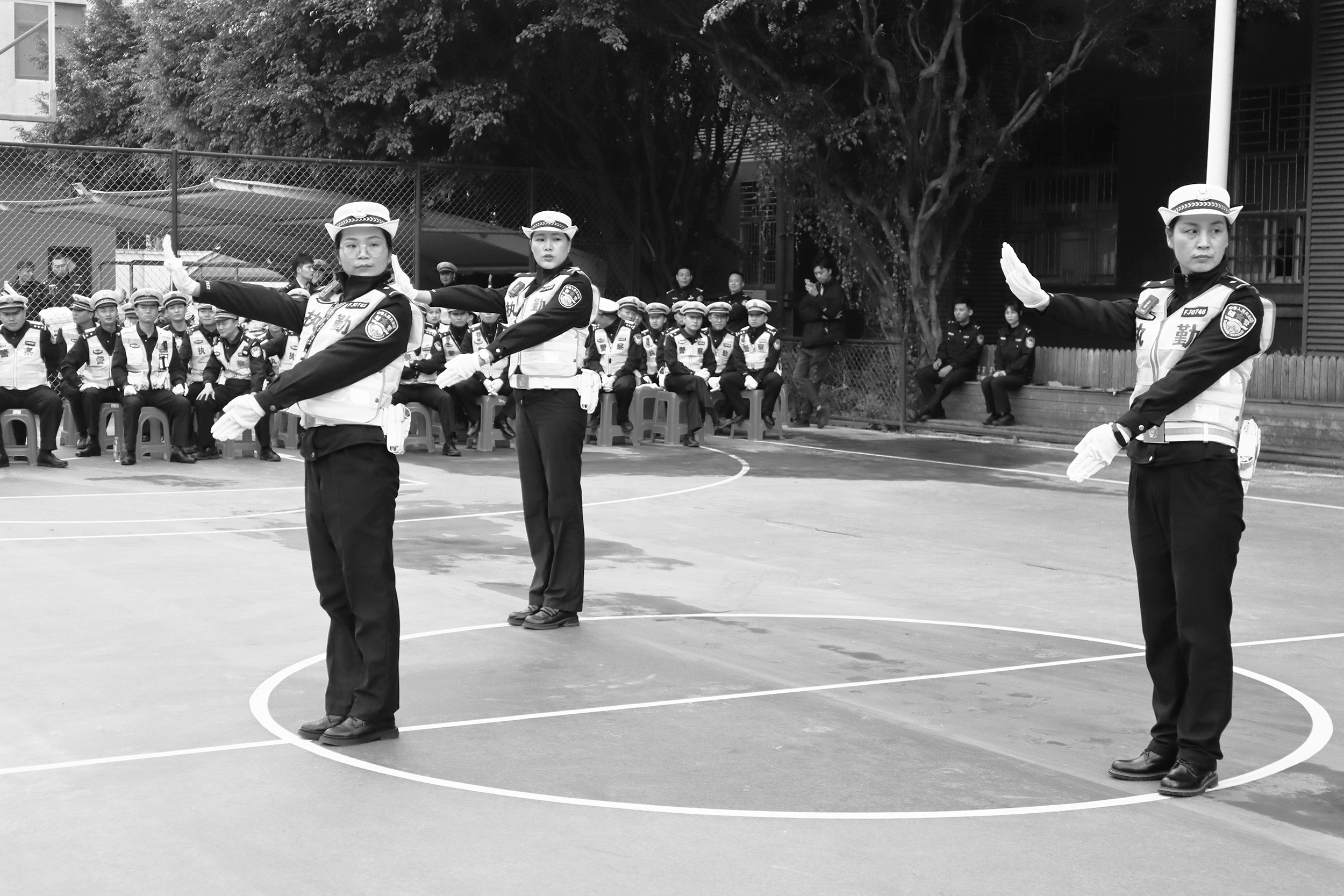 比赛开始后,来自福清市各交警中队和各基层派出所的15支参赛队伍走上“比武场”,标准完成每一个竞赛动作。评委们分别从参赛队员的精神面貌、着装整理、队列动作、指挥手势等方面进行综合评分和现场打分,并公布竞赛结果。